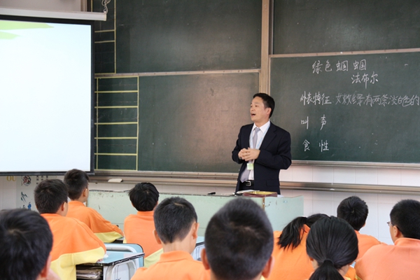 李明辉老师在七(1)班指教:《绿色蝈蝈》