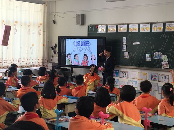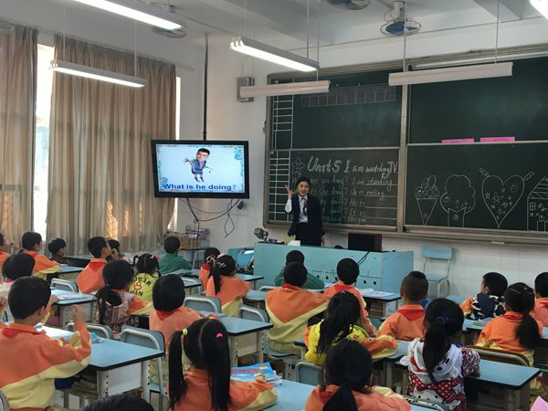 Miss 陈在二(4)上课内容是“I’m watching TV”。老师由一首歌曲引入词组,让孩子们装扮成机器人来表达有难度的答案,有趣极了!同学们精彩的表演为本课的学习增添了许多色彩!学生在熟悉掌握了词组后展开句型:What is ...doing?… She is.../He is...陈老师 教态活泼,语言风趣,拿自己和孩子们熟知的卡通人物做引导,让孩子们开心地表达自己愿意做的事情。课堂氛围热闹而有序,学生也在愉快的实操中轻松的掌握了知识,兴趣,情绪对于英语学习有着密不可分的关系,本节课从爱、兴趣、分享、展示这四个方面着手,充分达到了寓教于乐的目的。