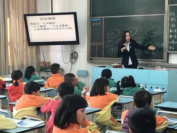 二(2)班吴红英老师上的《寻找身体上的数学“秘密”》,是一节综合实践课。孩子们在课堂上非常活跃,不仅仔细地测量身体各部位的长度,还用心地去探究这些部位之间的“秘密”。从测量数据,到猜想,到验证,孩子经历了一个完整的探究过程。不仅如此,孩子们还用自己的身体这把“尺子”,去测量身边的各种物体的长度,比如,大门、书柜、电视机等等,让孩子们学以致用,学有用的数学,学身边的数学。