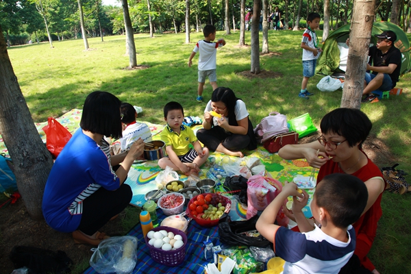 欢快的时光总是特别易逝,大家带着美好的心情开始打扫战场,还草地一片洁净。