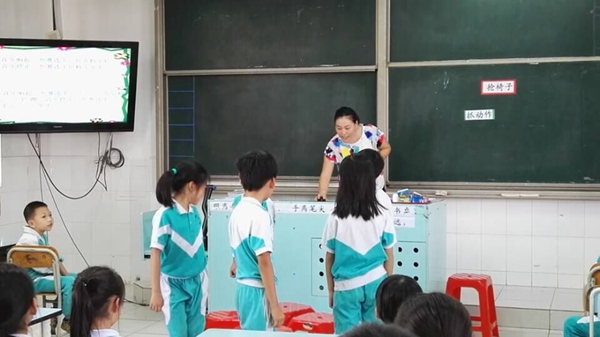 三年级的学生写作难点是不知道如何按要求、有条理地把内容叙述清楚。因此,孙老师在教学设计中,每一个训练点都是有层次、有梯度的。第一场游戏,要求学生观察参赛选手的表现,并抓住动词来说说比赛的场景,明确动词后,引导学生在动词前加上修饰词,让句子变得更生动;第二场游戏,要求学生观察参赛选手的神态,大胆猜测他们的心理活动。这一环节,孙老师采用了表格式、填空式的指导方法,让学生很快掌握了写作的技巧,达到叙述完整,条理清楚的要求;第三场游戏,通过拍照投影的方式要求学生观察比赛时周围同学的动作、神态、心理。这一环节是检验学生是否已掌握本节课的写作方法,老师采用小组合作完成表格,让学生合作讨论,最后的汇报展示达到了不错的效果。