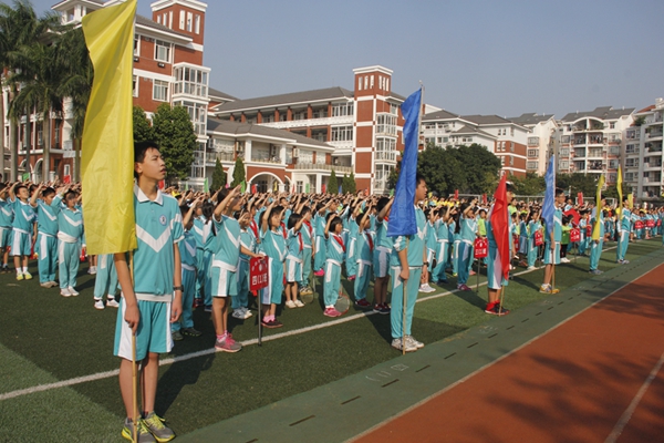 当肃穆的国歌响起,鲜艳的五星红旗徐徐升起,如熊熊烈火点燃了每一个热血沸腾的花城学子,嘹亮的歌声昭示着每一个人的骄傲与梦想。