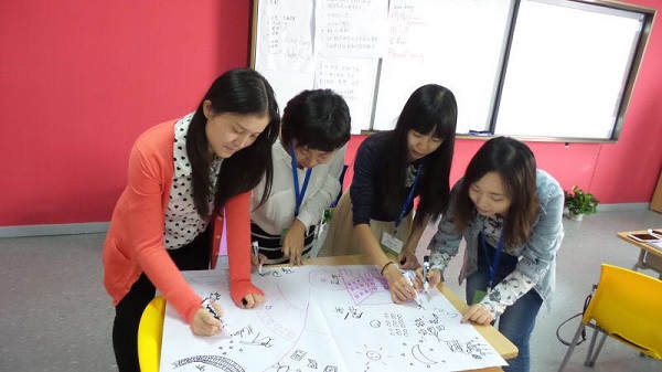IB的培训跟平常的学习培训很不一样,IB培训更加注重分组与实践,更具有针对性。培训官大多数是以前在幼儿园担当一线老师,他们经验丰富,更了解我们的需求。在培训的过程中,培训官深刻传达IB的探究精神,他不会直接让我们知道要掌握的内容,而是需要经过我们自主探索、独立思考以及小组讨论,其表现的形式以话剧、画图、动作等表现,不能使用文字,对老师们来说也是一种挑战。