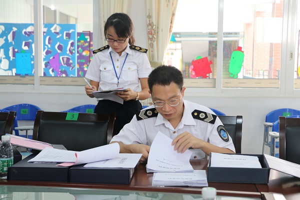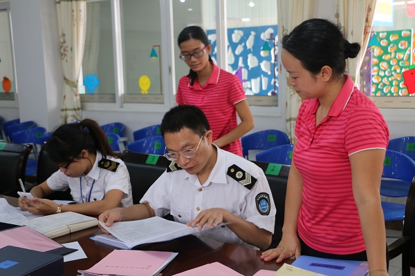 自2012年我园被评为“顺德区学校卫生等级A级单位”以来,每年区卫生监督部门都会定期到我园进行复核检查工作。10月28日上午,我园再次迎来顺德区学校卫生等级评审小组,对我园进行本年度的复核检查。评审小组分为资料检查组和现场快速检测组两组。资料检查组对我园卫生管理、健康教育、生活环境卫生、公共场所卫生与饮用水卫生等方面的资料进行细致查阅了解;现场速测组先后对教室光线、幼儿桌椅高度、直饮水和紫外线灯消毒效果等方面进行了细致的检测。