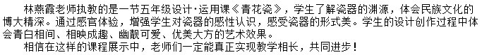 为了提高美术教师的专业发展水平,发挥个人的引领作用,提升老师的的整体实力,形成学校的美术教育特色。经过美术组三位老师的精心准备,第四周进行了课程展示,希望借此把学校的这项教学常规工作做得更好。