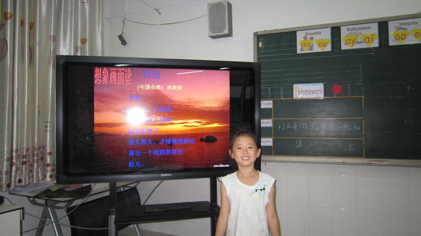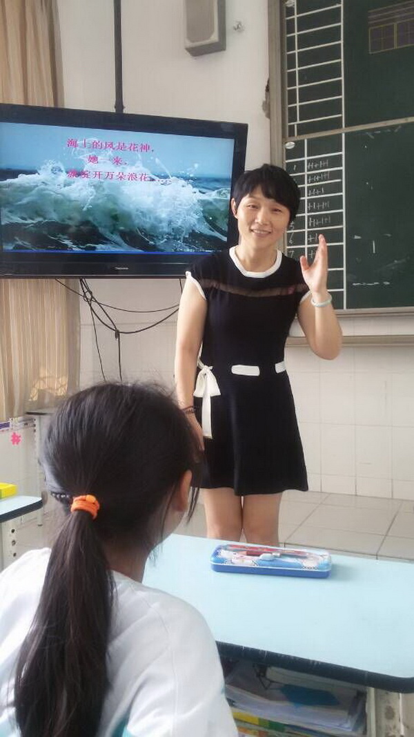 2015年9月16日,由备课组长焦肃英老师率先上了一节诵读指导课――《日有所诵》之“海上的风”。焦老师以轻松的对话开启了课堂,以精美的图片、优美的范读,展开了与“风”共舞的美好时光。课堂上,学生时而轻声自读,时而激情吟诵;时而生生轮读,时而师生对读……“请把字音读准”、“请读出你的感受”、“请读出诗歌的韵味”、“请读出画面感”------老师的一次次引导,层层深入,环环相扣,孩子们的书声此起彼伏,再现着文字中的图画……拓展部分的想象说话、绘画,更是锦上添花。整节课以读为主,说、写、绘为辅,图文并茂,时时冲击着视觉与听觉,给人以无限美感,师生一路享受着共同成长的快乐!