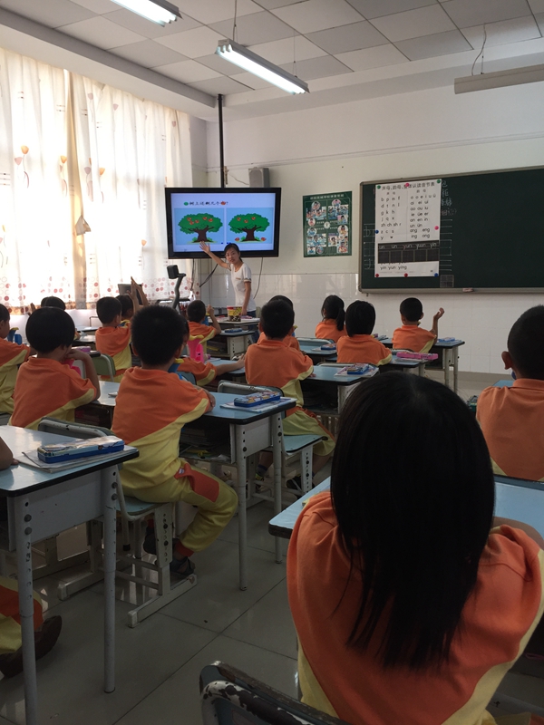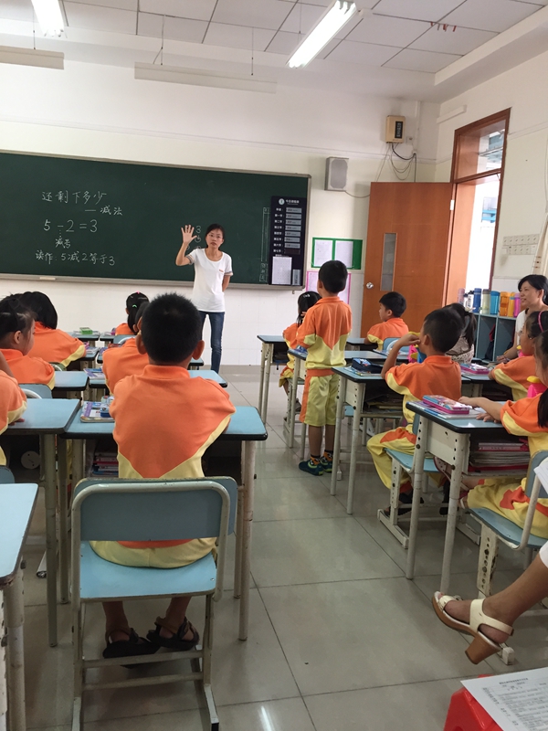 10月9日上午,数学组新加入的邓婷军老师为我们展示了一节精彩的“亮相课”,课题是《还剩下多少》,这是一年级认识减法的第一个课时。上课前,邓老师精心设计教学过程,准备了充足的学具。课堂上,邓老师用连环画的形式出示主题图,学生能直观地体会到“从总数中取出一部分,求剩余的部分时可以用减法计算”的这样一个思想,并舍得花时间引导学生一句一句把“树上原来有5个苹果,掉下2个,树上还剩下多少个苹果?”这个主要问题说完整,初步培养学生的提问和表述能力,有部分学生的语言表达能力很不错,能够完整地说出数学问题。一节课下来,孩子们在邓老师的用心引导下,初步理解减法含义,认识减号,会读减法算式,能够口算5以内的减法。实现了教学目标,抓住了教学重点,突破教学难点。