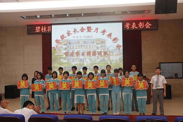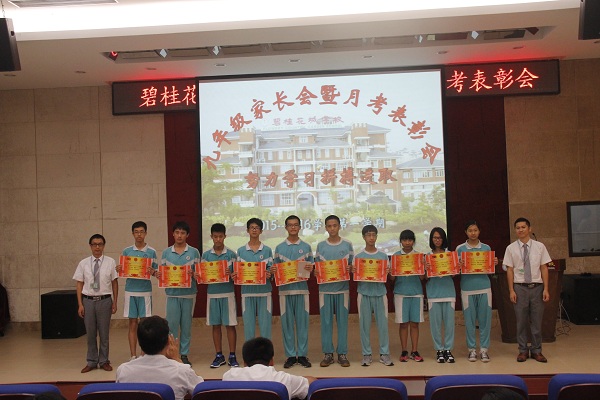 会上,欧阳晃增级长对九年级第一次月考情况进行了总结,表彰了“年级总分前二十名”“单科状元”“进步之星”等月考优胜者,并号召同学们向他们学习。