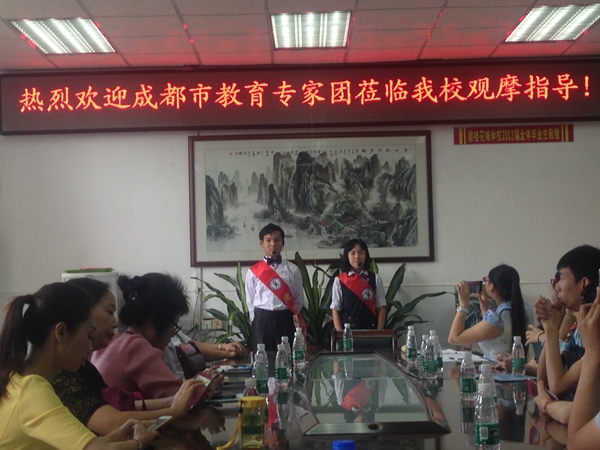 10月19日上午,成都市教育专家团一行近三十人在陈村镇教育局领导的陪同下,来到碧桂花城学校进行观摩交流活动。