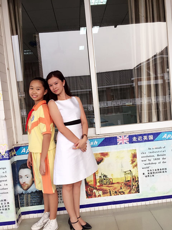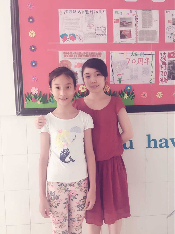上一次合影时,我还是懵懵懂懂的四年级小学生,这一次合影,是一个准备小升初的大姐姐了。看一看以前的照片,那时候,我才到miss田的肩膀高,一转眼,我都快比miss田高了。岁月的痕迹并没有爬上miss田的脸上,她还是那么青春,那么活泼,那么温柔。
