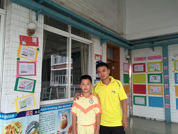 Mr谭最喜欢对着我们笑,他的笑容最有亲和力了,我们犯了错,他从来不骂我们,而且他很喜欢和我们一起打篮球。