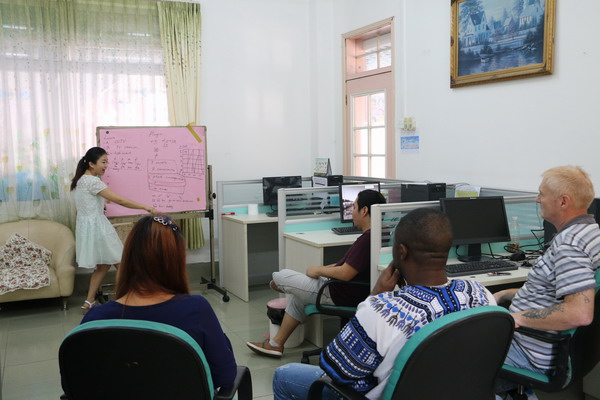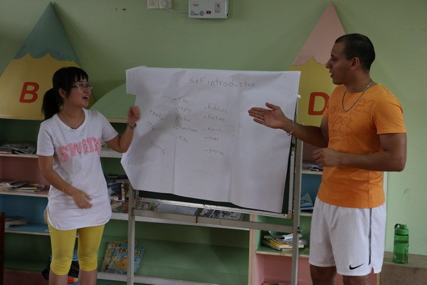 为提升我园教师的英语口语水平,从本学期开始,我园开展外教与中国教师师徒结对的活动,在每周一、二、五的下午对中国教师进行40分钟的英语培训。外教们也想学中文,我园卢思云老师教他们说普通话。