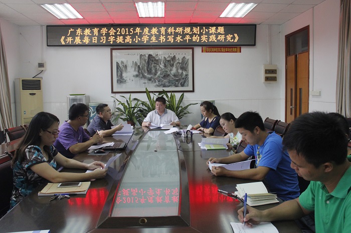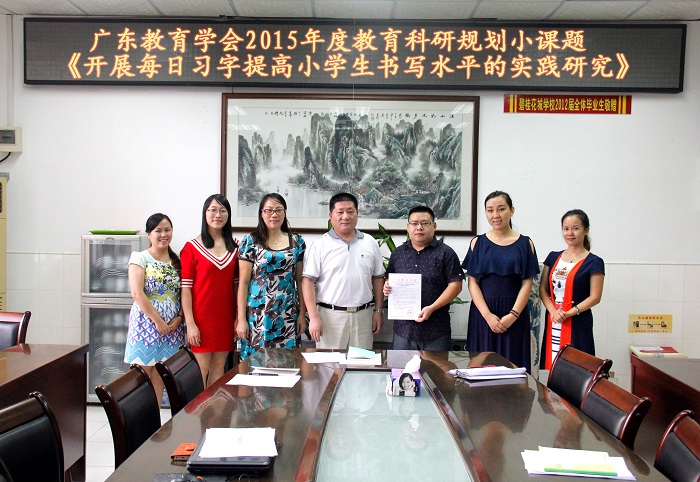 9月16日下午,我校广东教育学会2015年度教育科研规划小课题《开展每日习字提高小学生书写水平的实践研究》开题报告会在学校二楼会议室举行。