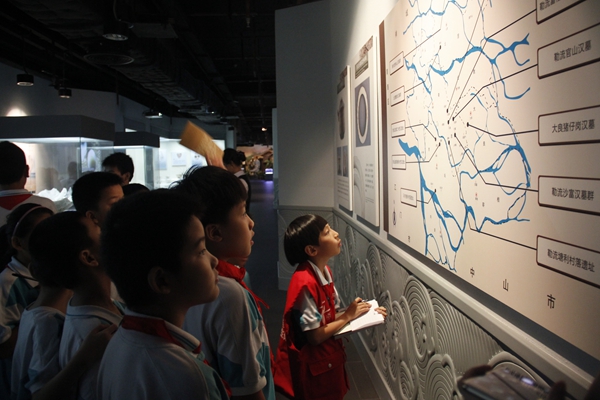 博物馆主要有六个专题展厅及临时展厅,最吸收我的是“顺德人,顺德事展厅,里面摆放了一些雕像,有的像在捕鱼,有的像在织衣服,还有的像在耕田……该展览在悠悠的历史长河中,突显了顺德人低调、稳健,精进奋发的文化特质,打破了通史式叙事方式,将展览分为岁月悠悠,土沃人勤,岭南壮县,毓秀钟灵,厚俗淳风,水乡烽火等六个主题。提炼顺德在考古发现、耕作拓垦、工商经营、贤人精英、民间民谷、抗战解放等方面的辉煌成就。当我看到顺德出了四位状元时,我心中真为他们骄傲、高兴!通过长达6米多的鳄鱼骨、东汉顶灯陶俑等珍贵文物,兼以图片、雕塑、复原场景、多媒体等新式手段、立体展现千百年来顺勤劳的德人,开辟沃土的精彩故事。