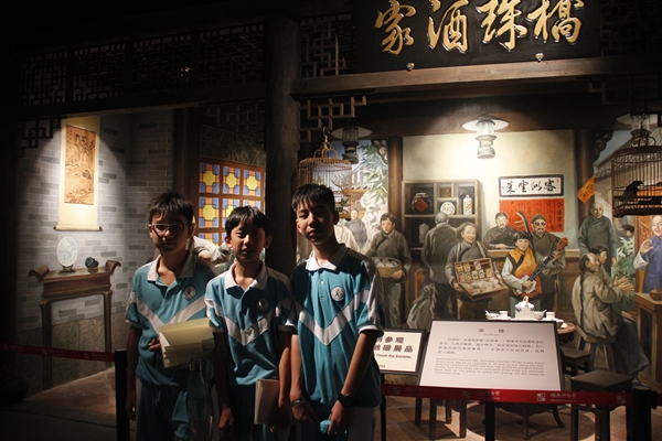 短短一个半小时的参观,我们在“顺德人、顺德事”展厅里看到了用蚕丝织布的智慧织女、看到了大汗淋漓划龙舟的威猛汉子,看到了坐在古色古香的茶楼里品特色点心的休闲人民,还看到了放着五彩大鱼灯笼的老人孩子……