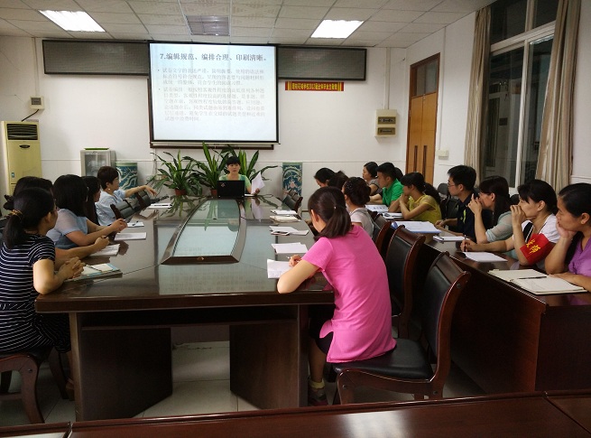 为了提升老师个人的业务水平,9月16日下午我校全体英语老师在学校二楼会议室举行了英语组教研活动。我校英语副主任郭胜丹老师为全体英语老师做了一个讲座,讲座的主题是《好试卷的标准》。郭主任解读了碧桂花城学校考试试卷分析表,从英语教学的三维目标入手解析了英语试卷的三维目标。郭主任的讲解细致深刻,不仅为老师的出卷指明了方向也为老师的教学指明了方向。