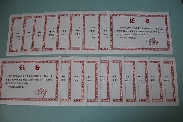 顺德区教育学会依据有关文件精神,进行2014年学年度学前教育教学论文及案例的评审。我园教师本着学术诚信原则积极参与,通过顺德区教育学会组织有关专家以公平原则评审后,我园教师收获颇丰,共有21篇论文和案例荣获奖项。在全区评选出的21篇一等奖优秀文章中有2篇是来自我园,徐志斌老师撰写的论文《男孩日常生活攻击性行为的成因及应对》荣获一等奖;汪萍老师撰写的论文《幼儿攻击性行为的个案分析和矫治》荣获一等奖。另外还有4位教师荣获二等奖,15位教师获得三等奖,特此祝贺。