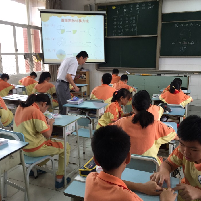 蓝建春老师上的《圆的面积》,一开始就将“圆”巧妙地设置在各种平面图形面积的复习中,接着让学生对比圆内接和外切正方形的面积,猜测圆的面积到底该怎样算?在调动学生浓厚的兴趣后,他提供了三种圆的面积研究方法,让学生自己自由选择任意喜欢的方法进行研究,学生个个兴致勃勃,跃跃欲试,在探奇的过程中不知不觉地理解“转化”的思想,很快就推算出了圆的面积计算公式,教学效果非常好。