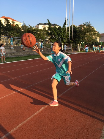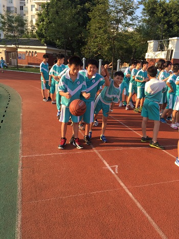 说特别,还真是有好几个地方与平常的比赛不一样。首先,担任这次比赛的裁判都是来自六年级学生,裁判人数竟然达到了12个!担任组织工作及维护现场秩序的也是学生,他们都来自六(1)班。学生自己的比赛自己组织,的确是可以锻炼能力哦!其次,它与普通的接力赛不一样,因为“接力棒”换成了大大的篮球了,而且,还是在运球的过程中完成接力,当然深受同学们的欢迎啦!