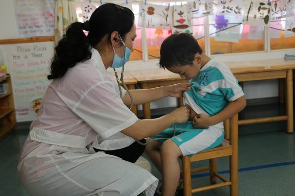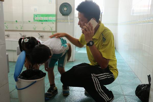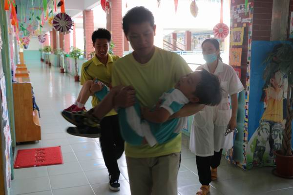为确保在园幼儿身体健康和生命安全,预防食物中毒的发生,建立完善应急救援机制。6月8日中午11点,碧桂花城幼儿园开展了食物中毒应急处理演练活动。幼儿园多名幼儿进餐后相继出现了腹痛、头晕、呕吐等症状,带班老师迅速通知保健医生,保健医生立刻奔赴现场,对幼儿进行了认真细致的检查后,及时向园长汇报了幼儿情况,应急预案立刻启动。第一时间组织紧急救护小组,并拨打了120医疗报警,将患儿送往最近的医院。班主任致电中毒幼儿家长说明情况,班级教师配合保健医生对残留食物、容器及可疑食品留样封存,并保存好患儿的呕吐物等,对无症状的幼儿进行观察和安抚工作。