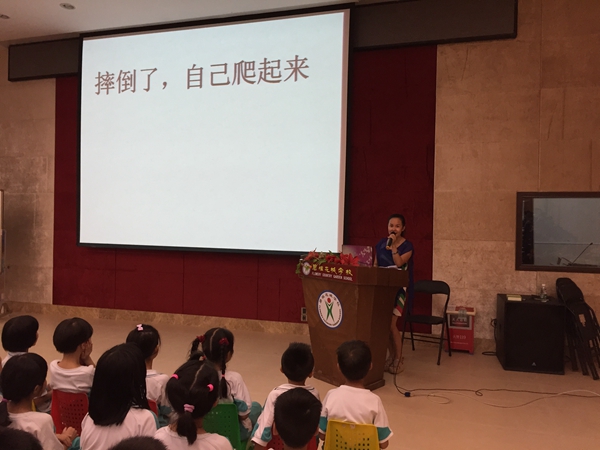 6月11日在碧桂花城学术报告厅,吴红英老师给一、二年级的孩子上了一节心理健康课――《摔倒了,自己爬起来》。吴老师针对现在大多数孩子存在的“衣来伸手,饭来张口;自理能力差,缺少自信;老认为自己小,一切依赖父母”等现状进行心理指导,引导孩子们你只要有信心,很多看来较难做的事,通过你的努力,你一定会做好,而且比你预想的更好。跌倒了自己爬起来,饿了自己找饭吃。如果学习上遇到困难,一定要相信自己能克服困难。