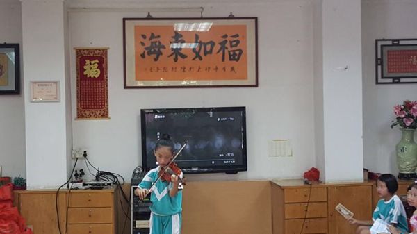 同学们为爷爷奶奶们献上了动感十足的舞蹈《中国范儿》、小组合唱《父亲》、精彩的古筝独奏《山丹丹花开红艳艳》,还有小提琴演奏、魔术表演、大合唱《甜甜的秘密》等……精彩的表演令在场的观众笑逐颜开,掌声不断。看着这群热情开朗、天真活泼的同学们,爷爷奶奶们仿佛觉得自己也年轻了十几岁。