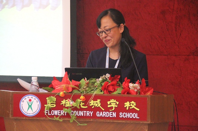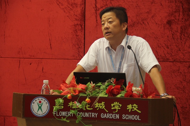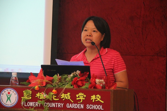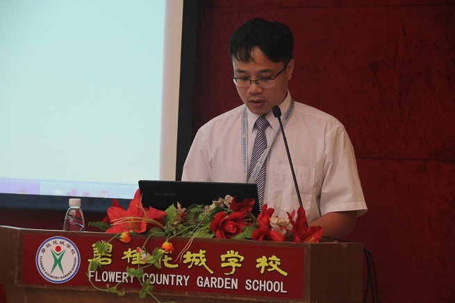 接下来由谭家文副校长进行报告,谭校长以《没有这个平台,我什么都不是》为题,字里行间透露出对碧桂园连锁学校的热爱和感激。谭校长以幽默的语调讲述着充满智慧的教学经验。谭校长对教学工作的开展、教研活动的进行和六年级语文教学任务进行了诗意的论述,言简意赅又显现出哲理,淳朴务实方彰显出智慧。有了谭校长的花城学校收获了许多成就,有了花城学校的谭校长收获了许多幸福。