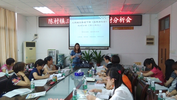 2015年5月19日上午9:30,陈村镇的三年级品德任课教师齐聚碧桂花城学校,参加“陈村镇三年级品德科教材分析会”。来自大都小学的陆莉园老师、谭村小学的黄萍萍老师、粱钊林纪念小学的梁瑞燕老师、碧桂花城学校的朱小琳老师分别对三年级下册《品德与社会》教材的四个单元内容做了非常精彩的分析。