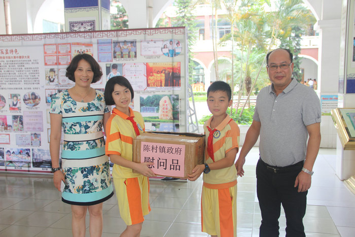 5月29日一早,陈村镇党委副书记陈锦钊先生、党委委员杨瑞华女士、教育局常务副局长暨耀文先生等一行十多人到我校开展“六一”慰问活动,看望了我校师生。