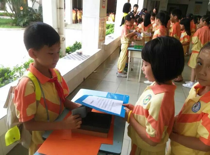 三年级的小朋友用流利的英语读着短文,单词和句子,回答问题当然也难不倒他们。二年级设置了友情服务站,碰到不会的单词或句子还可以到服务站请求英语老师和英语志愿者帮助。一年级的孩子也不示弱,别看他们年纪小,本领也不小。工作人员也全都是由学生担任呢:再看看小小工作人员和参与者之间认真问答的样子,本领还真不小呢!