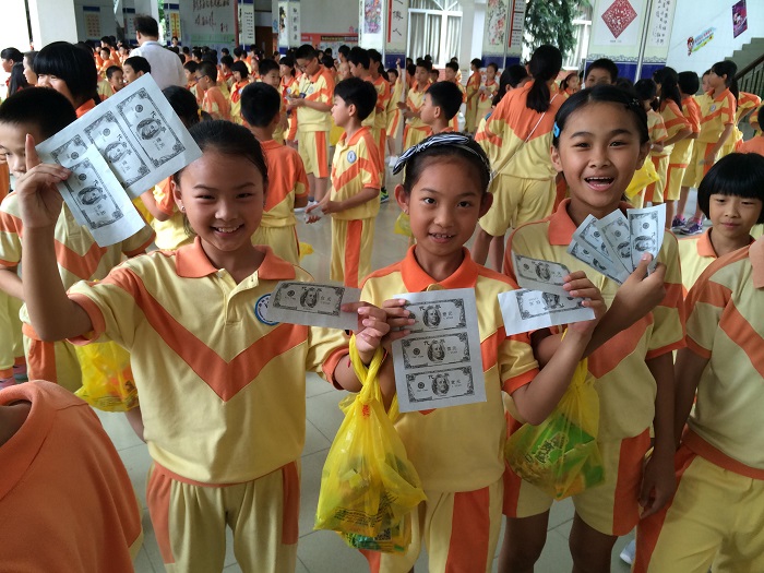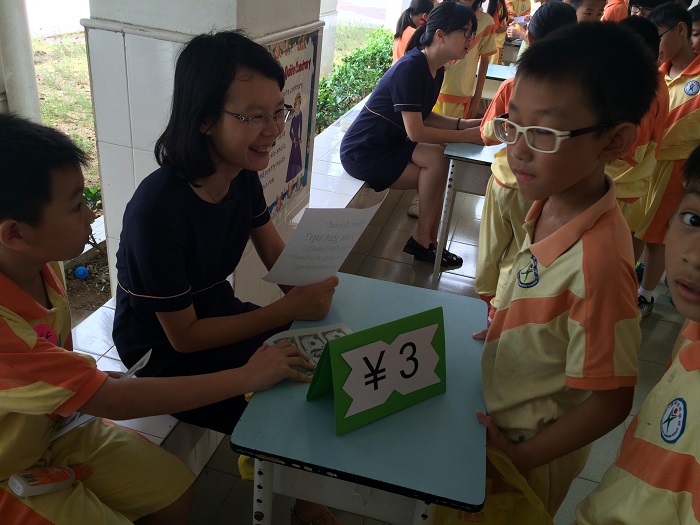 2015年5月29日上午,为了让孩子们度过一个快乐而又有意义的儿童节,充分感受节日的气氛,使每个孩子的个性得到张扬,潜能得到充分的发挥,激发学生热爱生活、热爱学习、热爱校园的情感,碧桂花城学校开展了“庆六一开心英语超市”活动。高年段的三个年准备了丰富的游园项目,同学们在各个项目中穿行,脸上抑制不住的欢喜激动――这是独属于他们的日子,他们可以尽情欢笑游戏。不同的游戏背后各有侧重点,包括读拼单词;读句子;连词成句;猜谜;问答交际等。每参加完一个游园项目,他们就能获得相应的奖券,最后凭着这些奖券兑换相应的礼品。