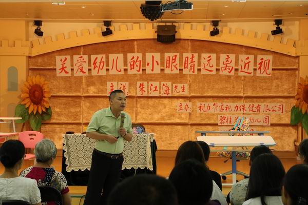 眼睛是我们心灵的窗户,是人体最重要的感觉器官,随着手机、电脑和电视等电子产品的广泛使用,现代人的眼部疾病越来越多,儿童近视低龄化的趋势日益明显。为培养幼儿爱眼、护眼的好习惯,促进幼儿的健康成长,在第二十个全国“爱眼日”来临之际,碧桂花城幼儿园邀请视力管家视力保健有限公司朱江海先生来园为家长和幼儿开展幼儿视力保健知识讲座。