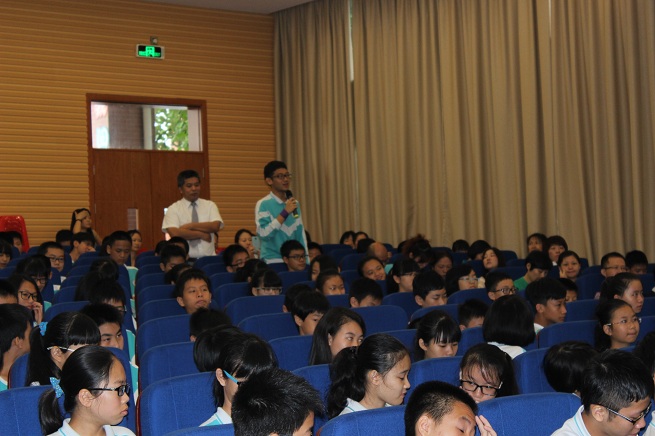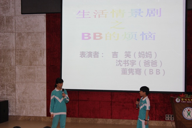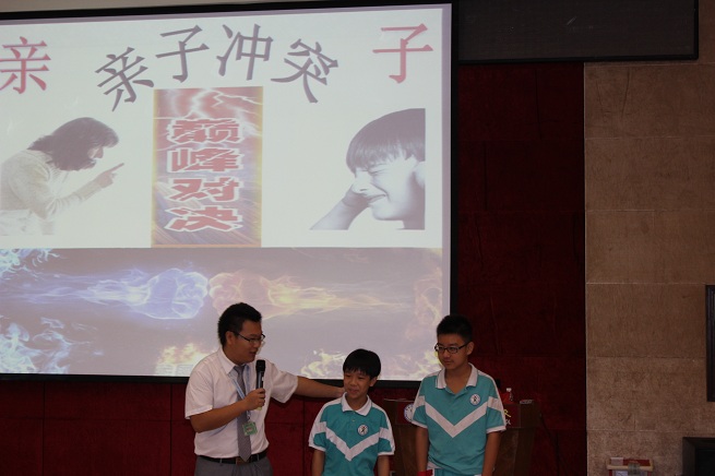 活动分为“心有千千结”“心有千千解”“心有千千语”三个环节,活动中王老师通过生活情景剧表演、小游戏、歌曲演唱、现场互动等形式交流亲子经验。“心有千千结”环节中,学生的生活情景剧表演,通过提炼家庭中真实而有代表性的案例展示亲子冲突,演员的精彩表演让活动伊始就营造了一个非常亲近而热烈的氛围。如何解决亲子冲突?在“心有千千解”环节中,现场学生写在卡片上的三点建议,其中不乏闪着思考与智慧的火花,学生的现场解释,能结合家庭中自己与父母的实际冲突,如因上网、玩手机、不能完成作业等而引发的亲子冲突,不仅具有代表性,而且同学们和现场的嘉宾既熟悉又收获颇多。