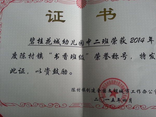 碧桂花城幼儿园中二班荣获“书香班级”荣誉称号