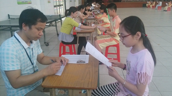 面试于15:20正式开始,同学们按考号有序地走到老师面前侃侃而谈,充分展示着自己的表达能力。老师们认真地聆听,根据同学们的表现不时地在评价表上写上成绩。