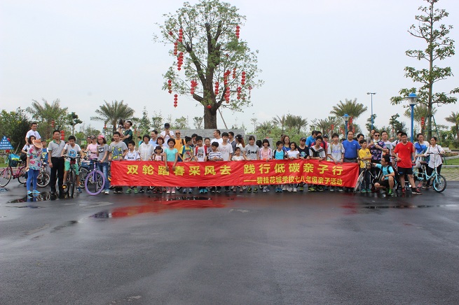 碧桂花城学校七八年级上周六举行了“双轮踏春采风去,践行低碳亲子行”的骑行活动。