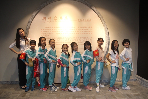 在讲解员的带领下,孩子们来到了全面展示顺德历史进程与民俗风情的“顺德人顺德市”展厅,观赏了岁月悠悠、土沃人勤、岭南壮县、毓秀钟灵、厚俗淳风、水乡烽火六大主题的展览,对顺德人在考古发现、耕作拓垦、工商经营、民间民俗、抗战解放等辉煌成就有了初步的了解。此外,还通过视频知道了千百年来,踔厉风发的顺德人,开辟平畴、岭南壮县的精彩故事。随后,还分别参观了“馆藏文物展厅”、“馆藏书画展厅”、“明清家具展厅”、“粤剧曲艺展厅”、“李小龙展厅”等专题展厅。
