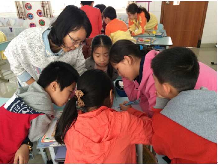郑莹莹老师展示的课题是《Then and now》。Miss Zheng的课堂氛围轻松快乐,注重学生的动手能力和合作能力,通过小组活动让学生完成主题任务,并要求学生以小组形式大胆展示口语,本节课成功展示了以学生为主,老师为辅的教学作用。