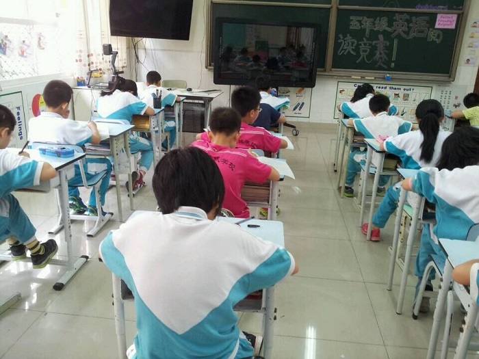 2015年4月2日(星期四)下午,五年级学生在教室里进行了一场英语阅读能力竞赛。