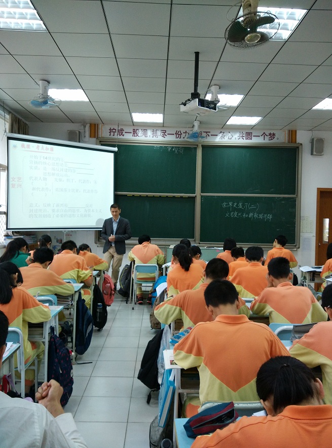 本次交流会先由我校胡志文老师执教复习课《文艺复兴和新航路开辟》,胡老师按照教研室的要求,给兄弟学校示范了一节第一轮常规复习课,他从单元分析入手,注重知识点的归纳和分析,特别是上课专门设计了3分钟快速背诵这一环节,把基础知识落实到位。针对中考复习,胡老师还引用了很多材料,材料新颖,贴切中考实际,学生在上课的表现积极踊跃,令人耳目一新。