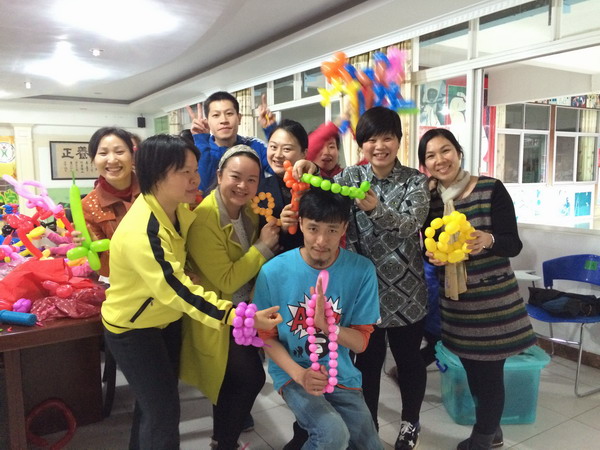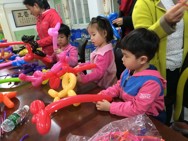 小小的气球,千变万化,作品缤纷多样,可以捏出各种各样的造型,今天我们学会了捏小狗、花朵、糖葫芦、剑等等,杨俊勇老师说:“传统的气球艺术多用长条气球,造型比较单一,规模小。而现在我们创作的这种气球作品以大为主,注重色彩搭配,灵活运用圆气球、长条气球等材料进行多变组合,气球造型不仅是一种装饰,更是一门艺术。”
