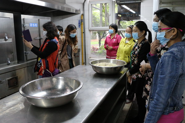 随后,代表们深入厨房工作进行全面的检查与监督,观看了厨工制作食品的全过程,对食品加工的规范有了更深的了解。查看了食品的进货台帐资料,不禁感叹我园的厨房日常管理严谨细致,同时感受到厨工的辛劳,还品尝了幼儿美味早餐、水果加餐和午餐,对厨师的厨艺给予高度的赞扬,试食完毕后填写了意见反馈表,美味的食物让委员们赞口不绝。