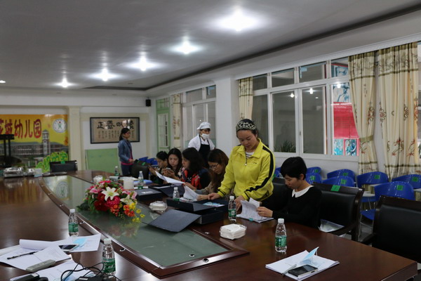 会议由幼儿园陈助理主持,陈助理图文并茂地介绍了厨房的基本情况、厨房日常管理情况。参会人员了解到我园为确保幼儿膳食的安全,从进货关、验收关、操作关、消毒关四关做起,抓好“四严”工作,落实索证索票制度,和食材的检测工作和肉类的检测证明。从切配加工、清洗消毒、备餐分餐等关键环节,要求厨工严格按照《餐饮服务食品安全操作规范》的要求操作。关注幼儿园厨房员工的培训,做好厨工消防安全培训和《食品安全操作规范化》等培训工作。