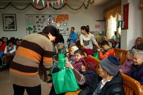 一大早,二(2)班的老师同学和家长们已经齐集在校门口,乘车到了佛山市顺德区陈村敬老院,向尊敬的老人们表演了英文歌曲、舞蹈、诗朗诵和古筝,表演结束,还向老人们赠送了礼物,老人们笑逐颜开乐开怀。