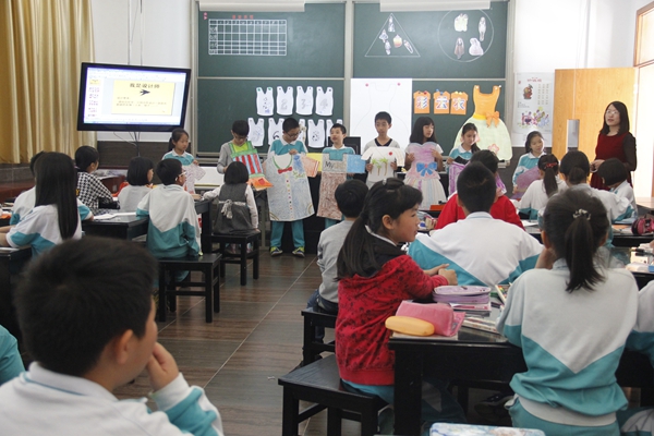 林燕霞老师的美术课《彩云衣》设计新颖,别具一格。首先以学生最感兴趣的时装秀导入新课,充分调动了学生的学习兴趣,为下一步的教学做了很好的铺垫。林老师利用精美而生动的课件让学生了解服装的风格,使学生从感官的满足引发表现的欲望,从而了解服装的色彩与结构。通过欣赏与表达,既丰富了学生的知识,又锻炼了学生的观察欣赏能力和语言表达能力。最后以服装设计比赛的形式来展示学生的作品,同学们思维敏捷,想象丰富,表现大胆,通过画、剪、贴,各种款式与风格的服装展现出来,有色彩艳丽的裙子、有超酷的短装、亦有宽松淡雅的休闲装……