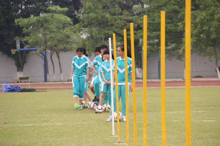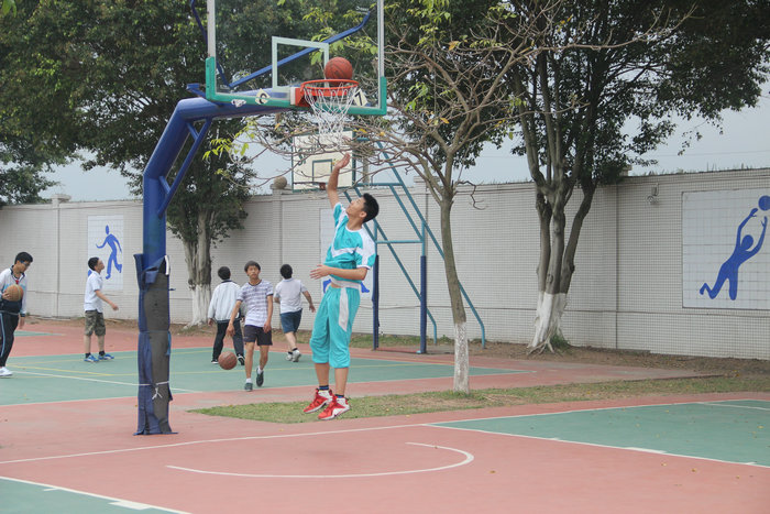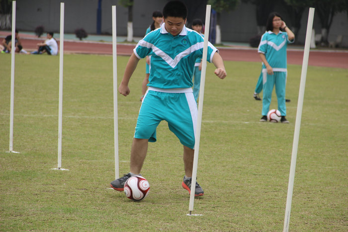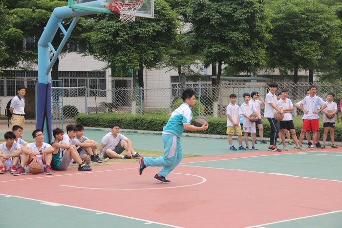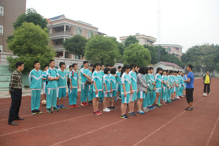 选考项分两个考试场地,分别在顺德莘村中学和陈惠南纪念中学,每位学生选一个项目即可,我校学生分别选择了游泳、足球、篮球和跳绳四个项目。