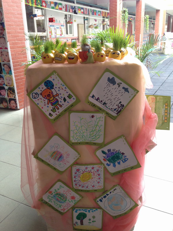 本次活动分为三个主题,首先是创意涂鸦赛。大班的小朋友发挥画画才能,拿起小小画笔,围绕“同一个地球同一个家”的主题画出自己心中最环保、美丽的地球,以此增强幼儿的初步责任感以及环保意识。第二个主题是绿色小宠成长日记。这个主题是小中班的幼儿参与。天才宝贝为每一位幼儿准备了天才宝贝绿色小盆栽,让他们自己拿回家种植,待小草长出来后给它们做造型拍照,一方面可以增强孩子爱护植物的意识,另一方面让孩子感受种植的快乐与成就感。第三个主题是环保成果展示会。展示会上展示出孩子们的创意涂鸦以及自己亲手种植的小盆栽“小宠”,向大家展示自己的劳作成果。