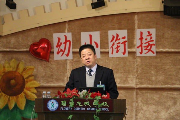 在幼儿园的小歌剧院里,碧桂花城学校的贺校长给全体家长作了幼小衔接的报告,就家长关心的安全、健康、做人、学习及生活习惯的培养等几方面做了演讲,贺校长的演讲妙语连珠,风趣诙谐,现场不时爆发出热烈的掌声和愉快的笑声。