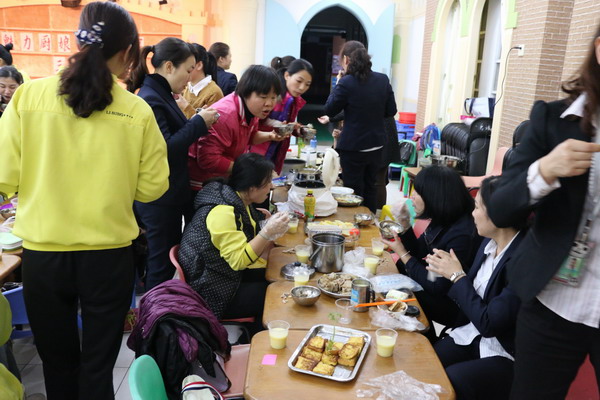 在“三八”节之际,为活跃教师课余文化生活,减轻工作压力,碧桂花城幼儿园于3月9日晚上6:45开展了教师3.8节美食分享会。每一位老师至少要准备一种特色菜品或主食与大家分享,感受分享的乐趣。