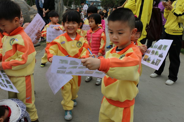 老师预先给孩子们准备了“树木观察记录表”,让孩子带着问题,带着任务,跟随着老师寻找表格上的各种树木。孩子们可开心了,小脸上充满了好奇充满了期待。沿途中孩子们探索了不同树木的形状、大小、颜色及用途上的差异。瞧!孩子们很认真地听老师讲解,并在记录表上做好记录。这样既培养了孩子的观察与分析的能力,还提高了孩子们的专注力。老师带孩子们玩“抱抱大树”和“叶子飘飘”的游戏,在游戏的过程中,孩子能通过与树木、叶子接触感受自然界的美,培养了孩子热爱大自然的情感。